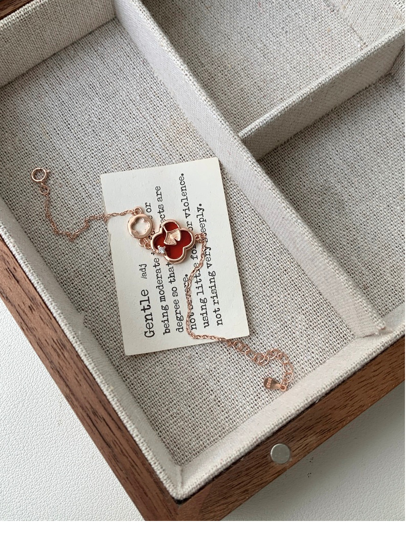 This S925 Sterling Silver & Red Agate Four-Leaf Clover Necklace is more than just jewelry—it’s a symbol of luck, love, and sophistication. The natural red agate stone is carefully set in a rose gold plated sterling silver clover pendant, radiating positive energy and elegance. The adjustable chain length (16"-18") ensures a customizable fit, making it ideal for layering or standalone wear.