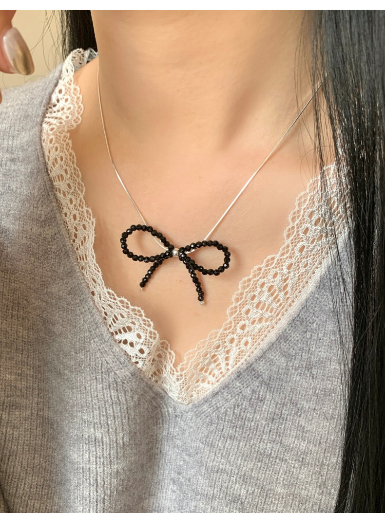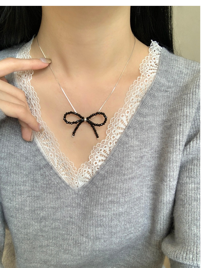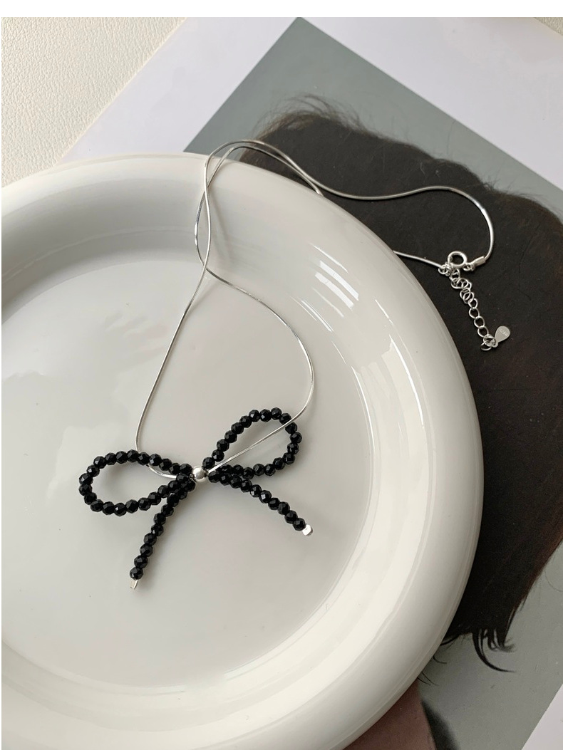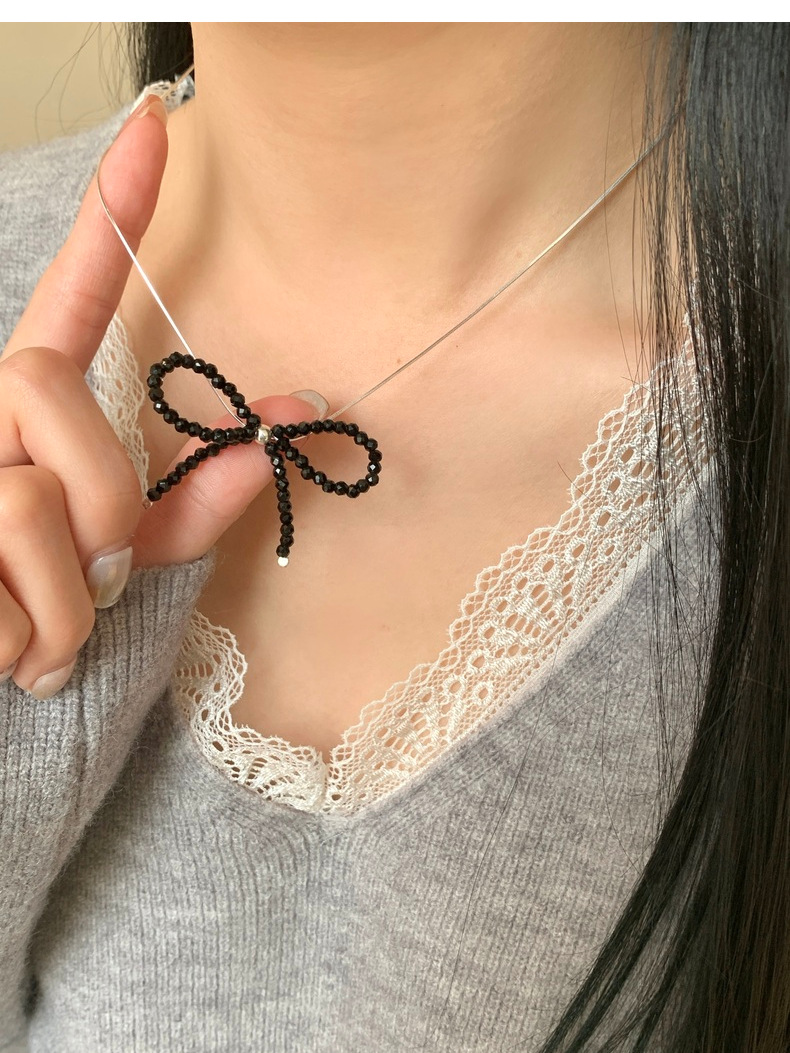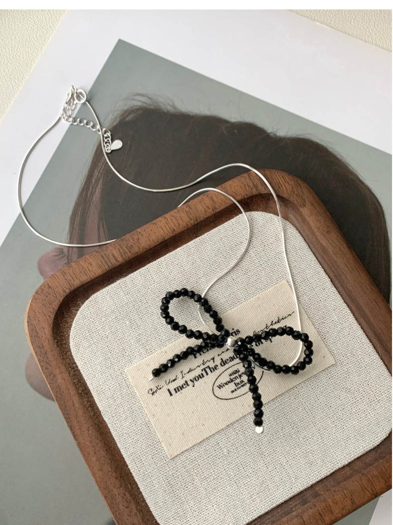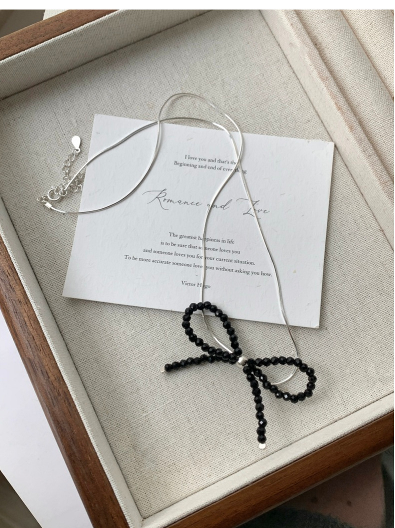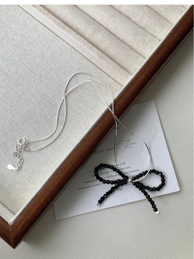 This S925 Sterling Silver Black Spinel Bow Necklace is more than just jewelry - it's a statement of refined taste and Korean-inspired elegance. The intricately crafted bow design symbolizes grace and femininity, while the sparkling black spinel adds a touch of luxury. Measuring 16-18 inches with an adjustable chain, it sits perfectly on your collarbone for a flattering look.