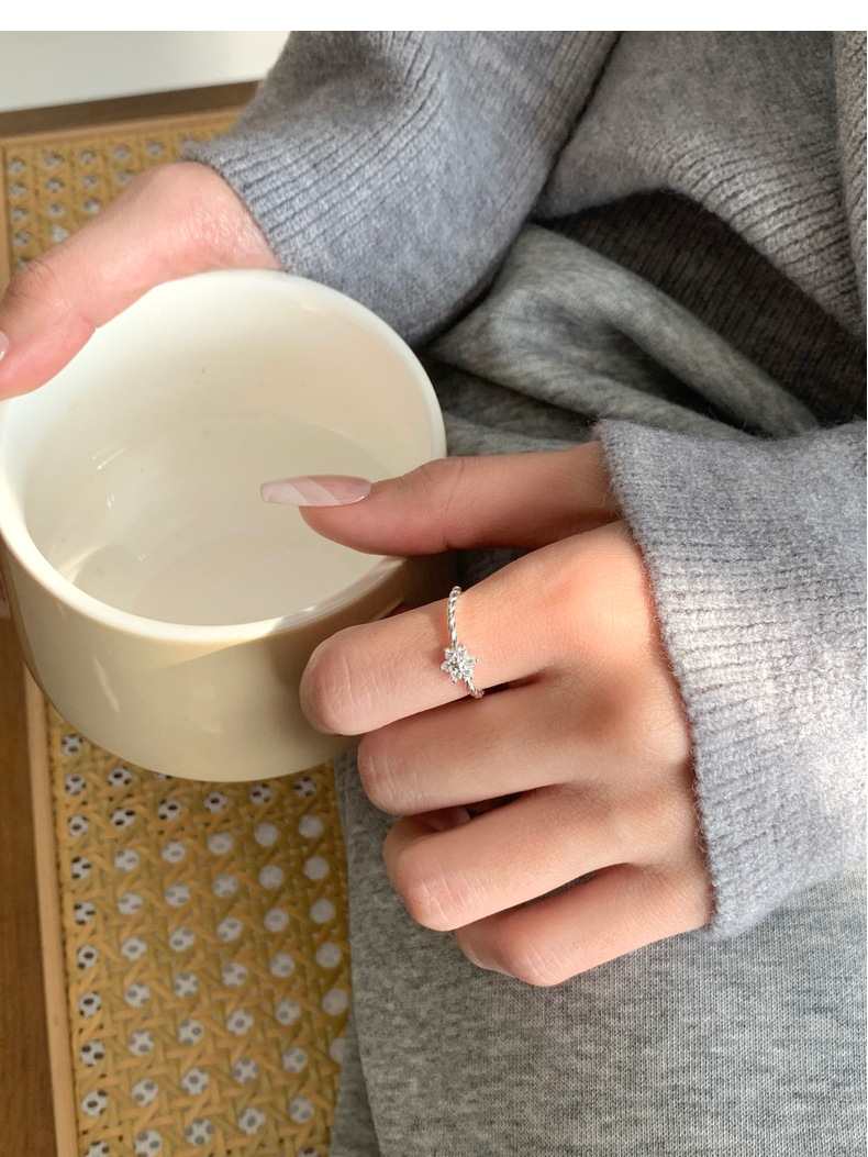 This S925 sterling silver flower zircon ring features a delicate twist rope design, offering adjustable sizing for a perfect fit. Inspired by Korean INS-style trends, its minimalist floral motif adds a touch of elegance to any outfit. Ideal for daily wear or gifting, this dainty ring is hypoallergenic and nickel-free. IN CHINASQK.COM