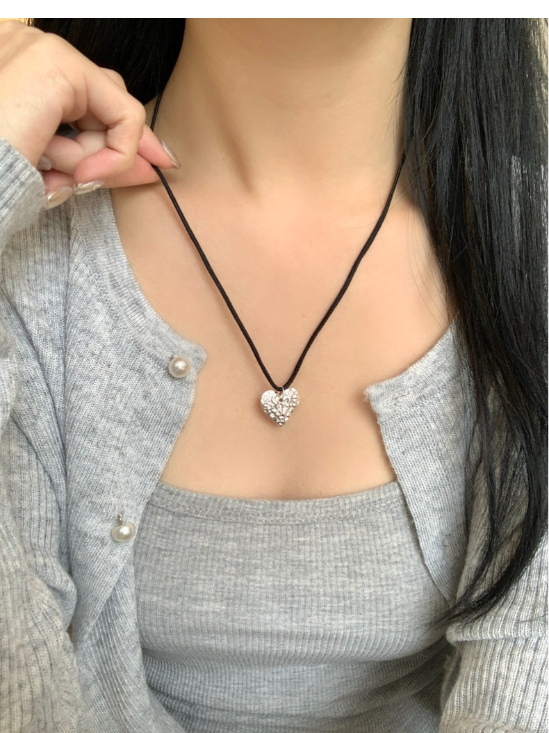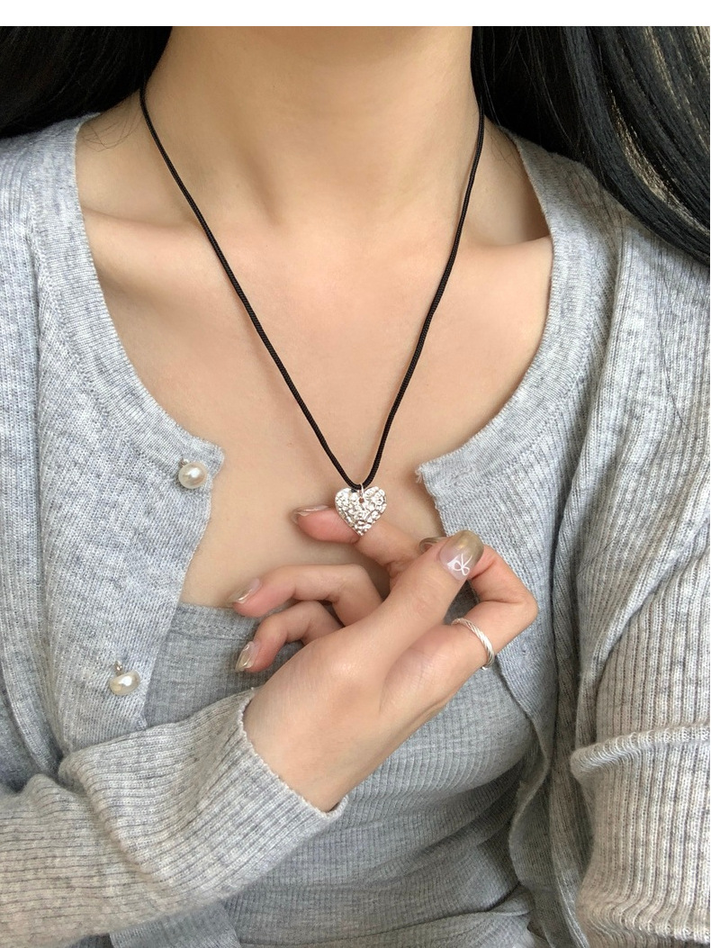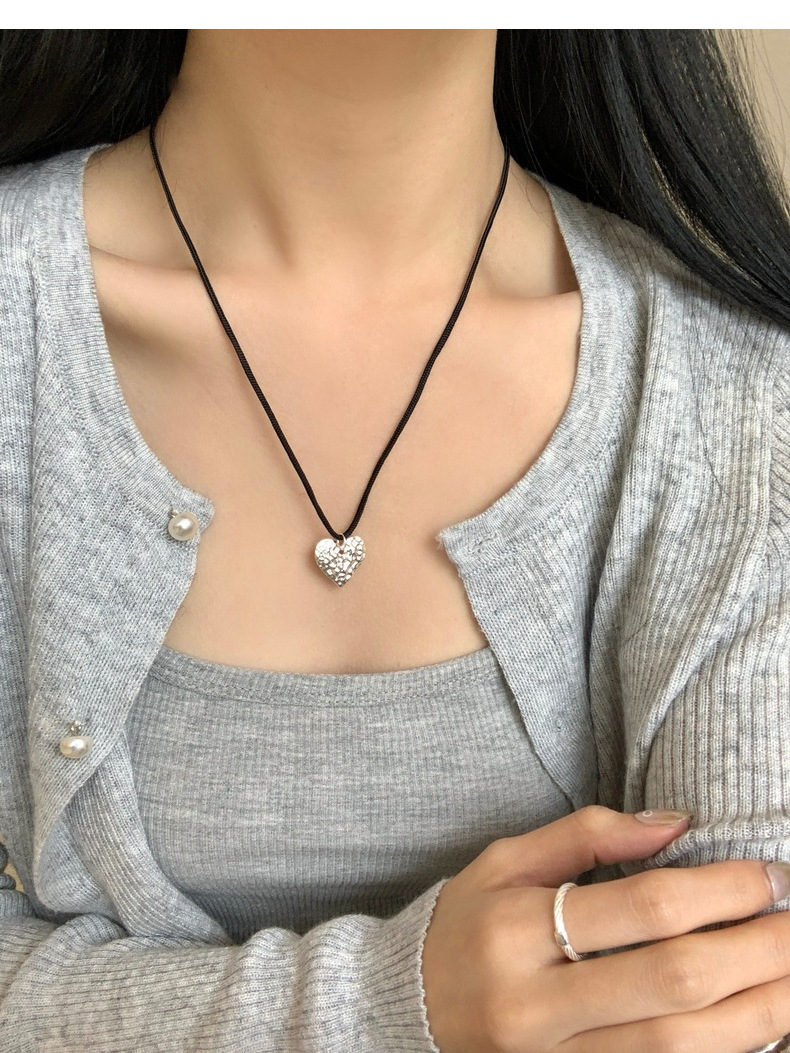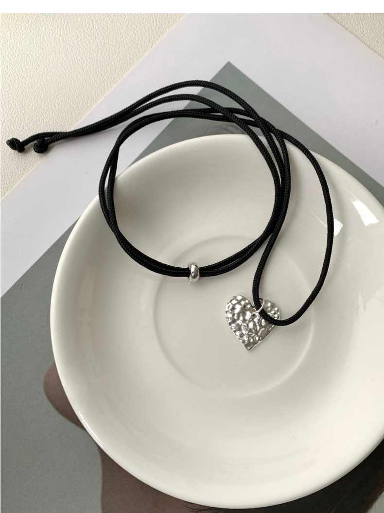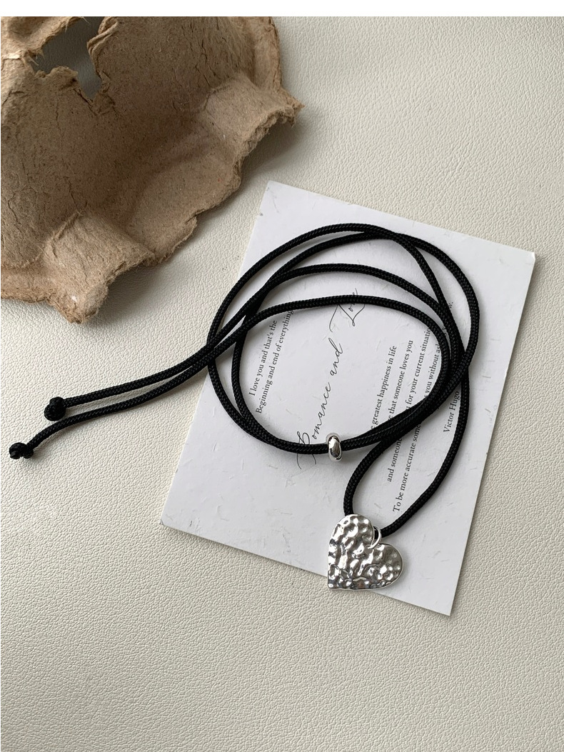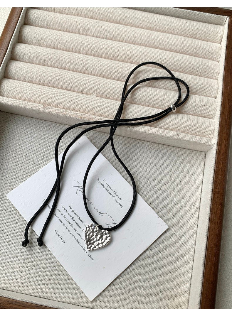 This S925 Sterling Silver Hammered Heart Necklace is a masterpiece of contemporary jewelry design, blending artisan craftsmanship with wearable elegance. The intentional hammered texture gives each piece a one-of-a-kind organic feel, while the heart silhouette adds a romantic touch. The high-quality black cord provides a modern edge that pairs perfectly with the silver pendant.