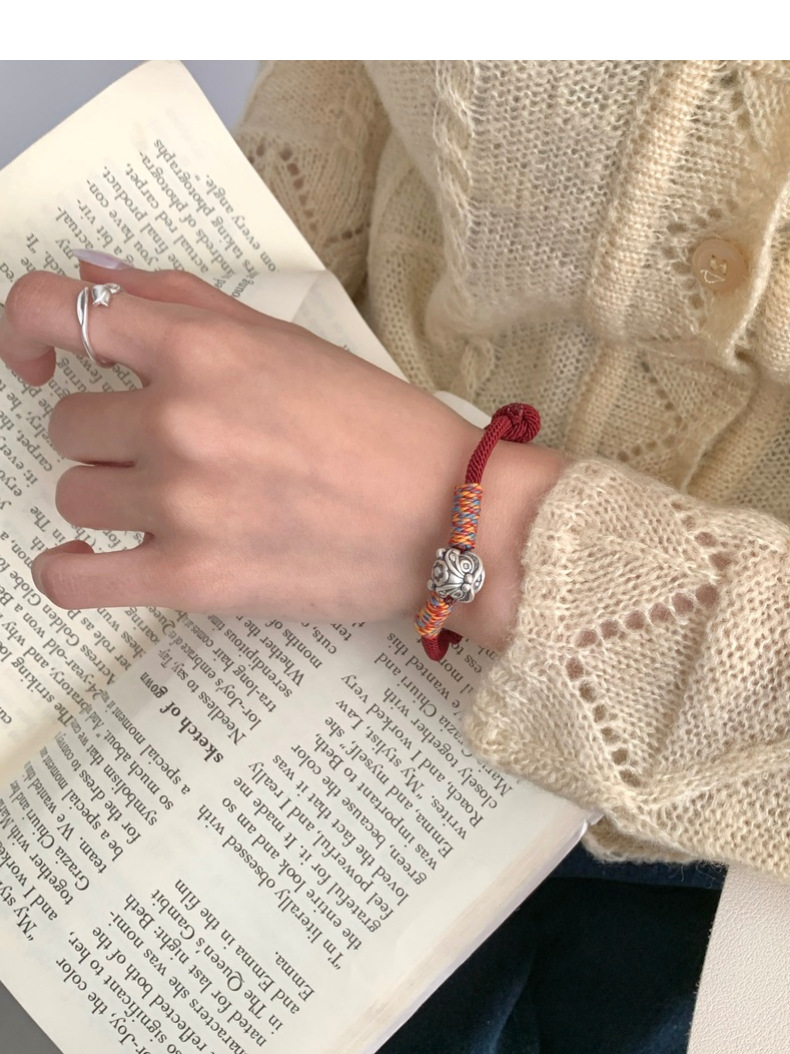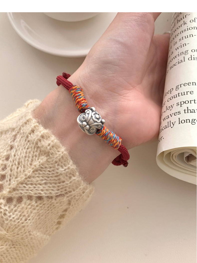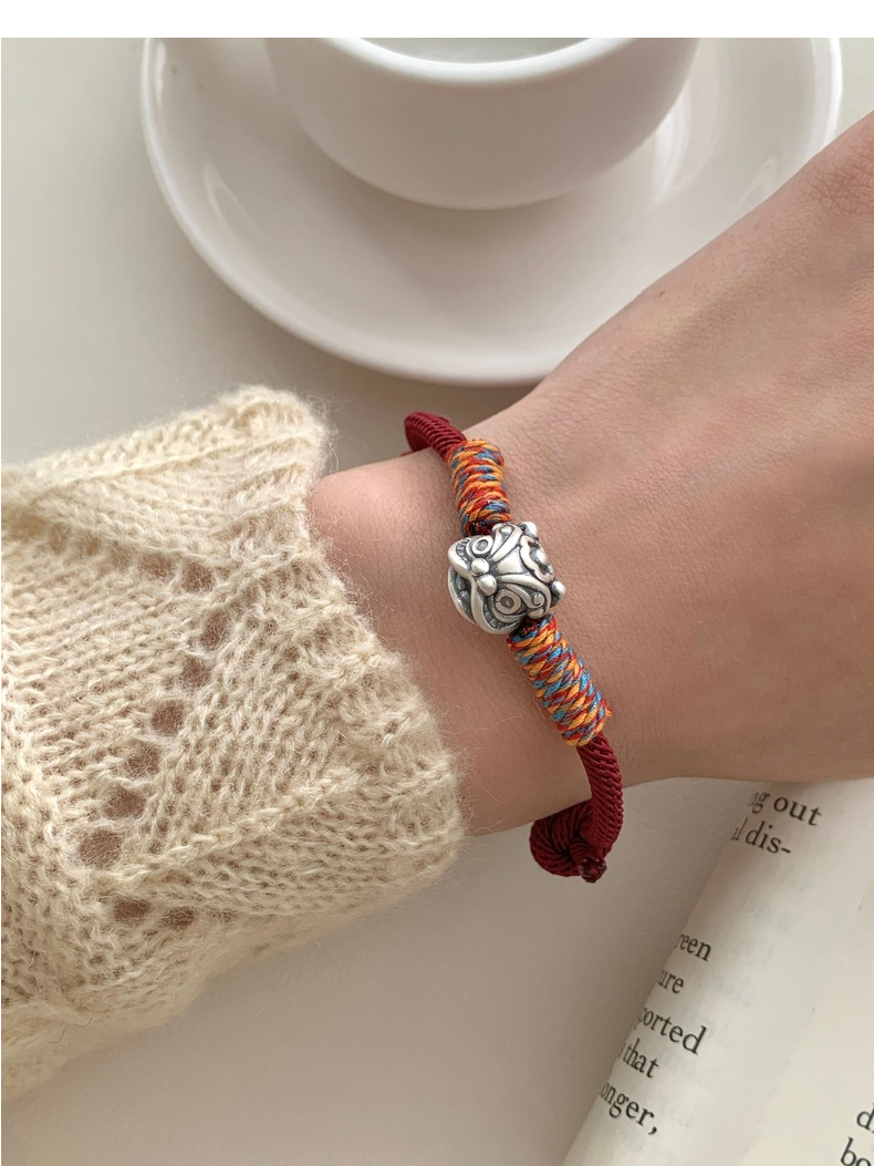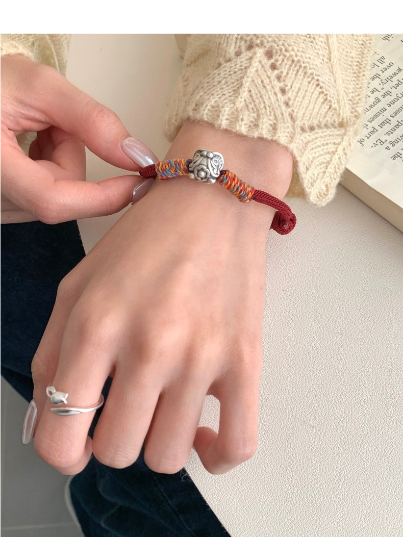 S999 Pure Silver Chinese Lion Dance Bracelet – Adjustable Red String Luck Charm (Trendy INSPIR Oriental Talisman Jewelry)